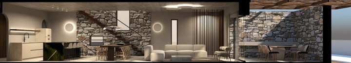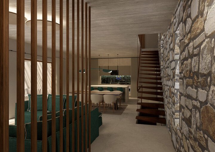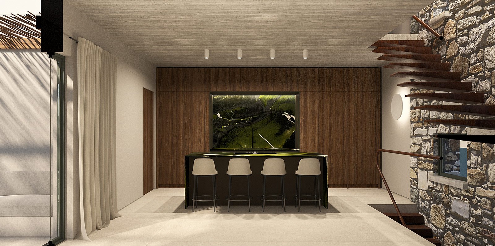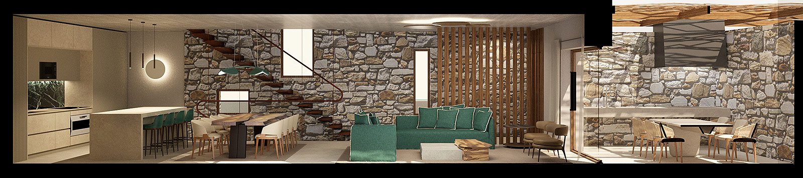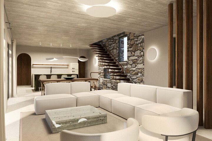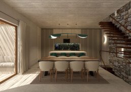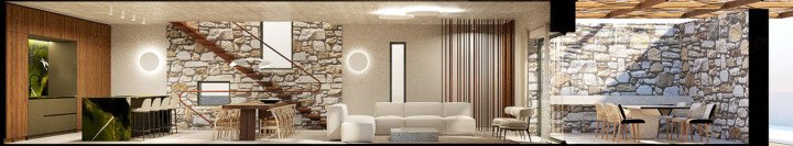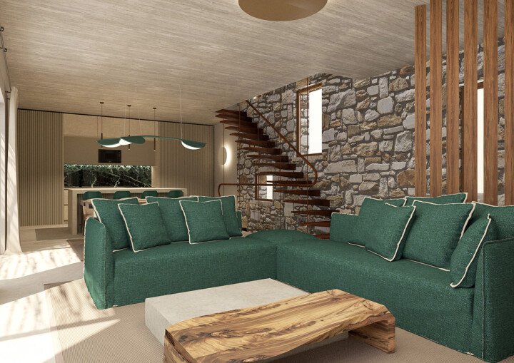 The architectural choice is dictated by the characteristic traditional local design of the buildings and indicates respect for the natural landscape.